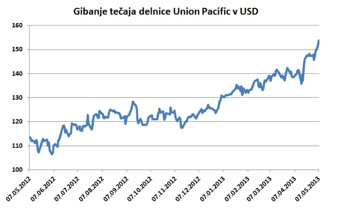 Gibanje tečaja delnice družbe Union Pacific v USD (obdobje zadnjih 12 mesecev)