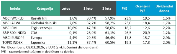 Čeprav so bili trgi v razvoju neposredno izpostavljeni dogajanju na Bližnjem vzhodu, so se odrezali razmeroma dobro. Indeks trgov v razvoju je v prvih treh mesecih, merjeno v evrih, ohranil skoraj 4-odstotno pozitivno donosnost in s tem vidno presegel razvite trge, ki v tem obdobju niso zabeležili rasti in so ostali na izhodiščni ravni.