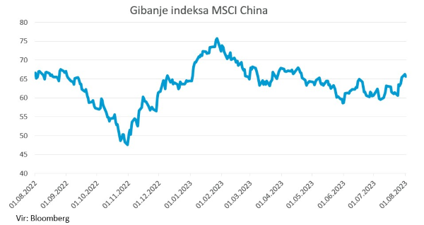 Končno so tudi kitajske delnice končale mesec optimistično, saj so se oblasti v Pekingu omehčale in pokazale odločnost, da podprejo gospodarstvo, ki je v zadnjih mesecih izgubljalo na moči. Najavo uvedb novih spodbujevalnih shem za krepitev domače potrošnje in podporo nepremičninskemu sektorju v preostanku letošnjega leta so vlagatelji, ki so bili v preteklosti že večkrat razočarani zaradi pomanjkljive podpore gospodarstvu, pozdravili s kar 7,7-odstotno mesečno rastjo kitajskega delniškega indeksa MSCI China. Zagotovo je gospodarsko okrevanje Kitajske še vedno zaskrbljujoče in treba bo še videti, kako hitro in kolikšen učinek bodo imeli najnovejši ukrepi, vendar je trenutno najpomembneje, da regulatorji vrnejo optimizem in povečajo zaupanje na trgu. V preteklosti je Kitajska večkrat izkoristila globalizacijo sebi v prid, zadnji podatki pa kažejo, da svetovno gospodarstvo ne podpira več dinamike kitajske domače rasti. Kitajski izvoz se je v juniju zmanjšal za 12,4 %, uvoz pa za 6,8 %, torej veliko več od 10-odstotnega upada izvoza in 4,1-odstotnega zmanjšanja uvoza, ki so ju predvidevale napovedi. Prav tako je objava kitajskega statističnega urada sredi julija pokazala, da je gospodarstvo v drugem četrtletju zraslo za 6,3 %, kar je manj od pričakovanja trga po 7,3-odstotni rasti. Medli podatki so posledica nižje rasti povpraševanja v Evropi in drugje po svetu in tudi v bližnji prihodnosti bo rast verjetno zadržana, saj se bo svetovno gospodarstvo še nekaj časa spopadalo s posledicami najbolj agresivnega vala zvišanj obrestnih mer centralnih bank.
