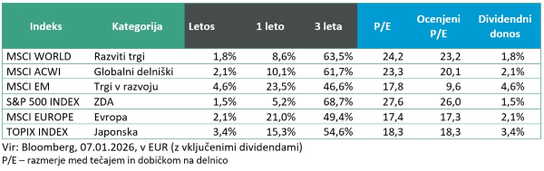 Že v prvih dneh novega leta smo se ob zimi in snegu znašli zasuti v vrtincu dogodkov, ki nas bodo na finančnih trgih premetavali in razburjali do prihodnjih božičnih praznikov. Ameriški predsednik Trump je začel udarno, s spektakularno akcijo ugrabitve venezuelskega predsednika Madura, Elon Musk je izjavil, da smo vstopili v »singularnost« (točko, ko umetna inteligenca preseže človeško ter sproži nekontrolirano in eksponentno tehnološko rast, ki naj bi preoblikovala našo civilizacijo), po 45 letih je ugasnil program MTV, po 60 letih pa se je od vodenja investicijskega konglomerata Berkshire Hathaway poslovil najbolj slavni investitor Warren Buffett. »Moje življenje je bilo rezultat učinka obrestno-obrestnega nalaganja. Nič več. Nič manj. In nič briljantnega.«