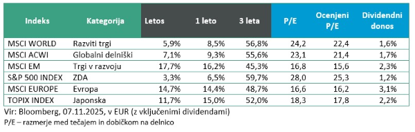 Oktober je bil za globalne finančne trge pretežno ugoden mesec. Umiritev trgovinskih napetosti med ZDA in Kitajsko ter upočasnitev inflacije sta spodbudili večje zaupanje vlagateljev. K pozitivnemu razpoloženju so dodatno prispevali izjemno dobri četrtletni rezultati tehnoloških in finančnih družb, ki so kljub zaskrbljenosti glede carin in monetarni sprostitvi ameriške centralne banke presegli pričakovanja in potrdili odpornost.